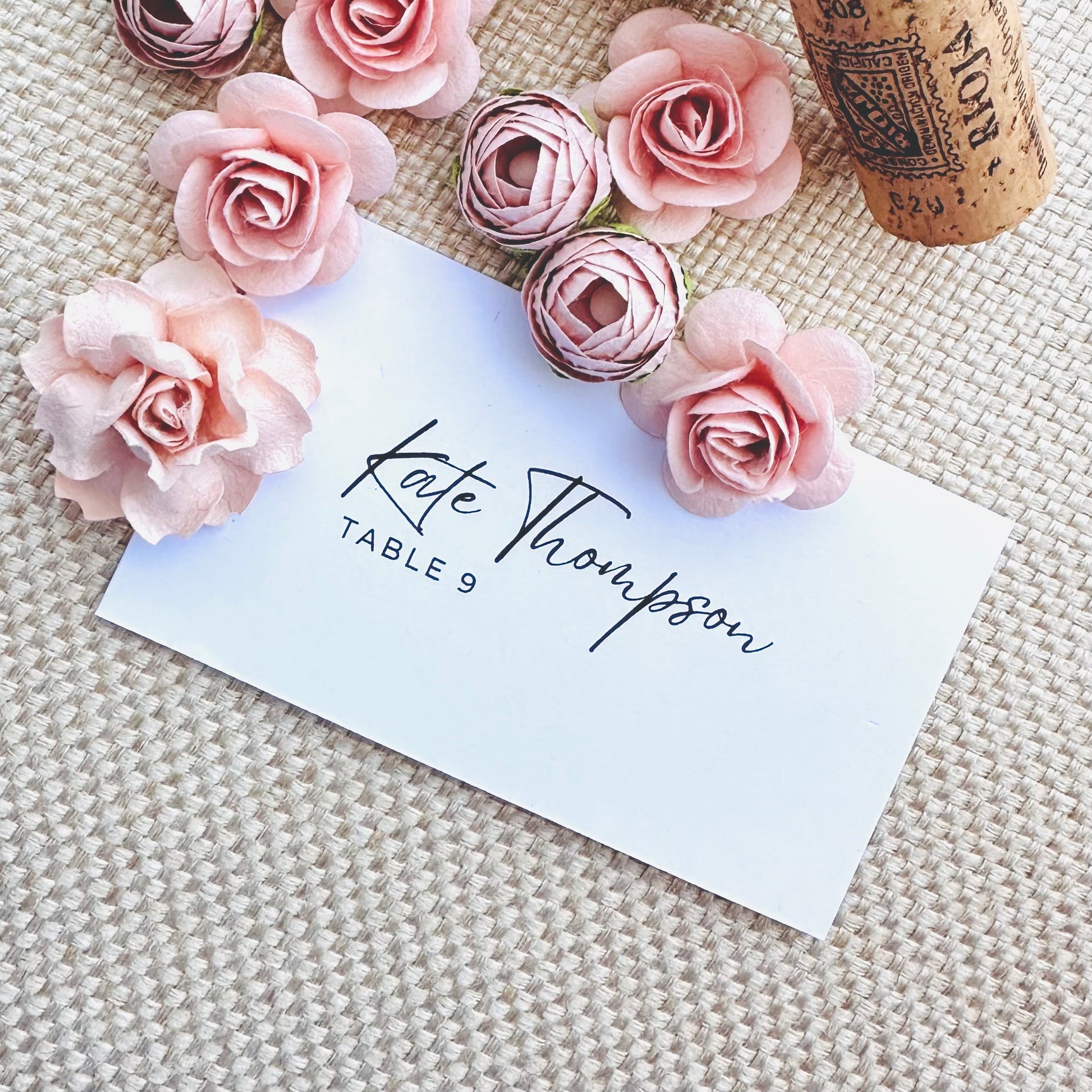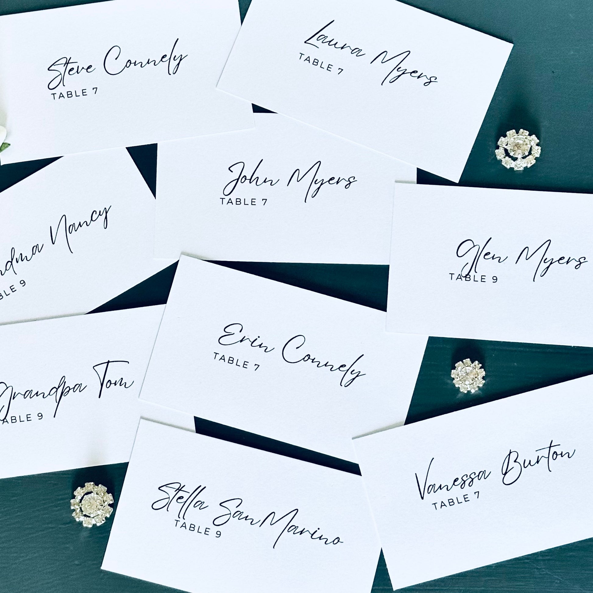 Whether you’re planning a wedding, rehearsal dinner, bridal shower, or elegant party, these personalized place cards elevate your tablescape while helping guests easily find their seats.